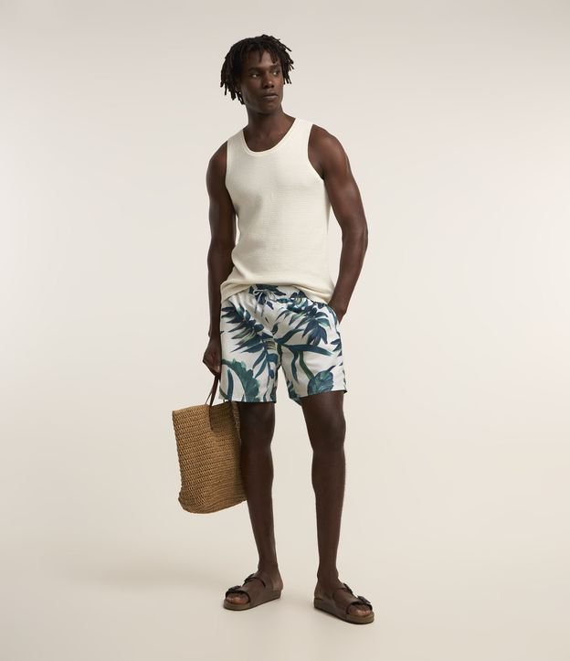 Bermuda em Microfibra com Estampa de Praia e Ca
